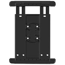 The RAM® Tab-Tite™ spring-loaded, quick release holder offers a secure fit with easy access to the mounted tablet. The spring-loaded design makes it easy to insert and remove your tablet, while keeping it secure in a variety of applications. The custom end cups are designed to optimize the functionality of your tablet, enabling access to all buttons, ports, and tablet functions. Included is a set of four nuts and bolts to attach the holder to any RAM® components that contain the universal AMPS hole pattern. For off road environments and use in open cockpit applications, we recommended the use of a tether to assist in securing your device. The RAM® Tab-Tite™ holder is compatible with any tablet within the listed dimensions.