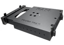 The RAM Tough-Tray™ is spring loaded expandable tray that can accommodate 10 to 16 inch wide laptops. The tray includes four flat side clamping arms, allowing your laptop to close completely while in the tray. These arms can be moved both vertically and horizontally, allowing a custom fit for varying thicknesses of laptops and the freedom of not blocking ports or drives. Hole patterns on perimeter of tray facilitate the mounting of additional RAM systems to support GPS, PDAs or other electronics.